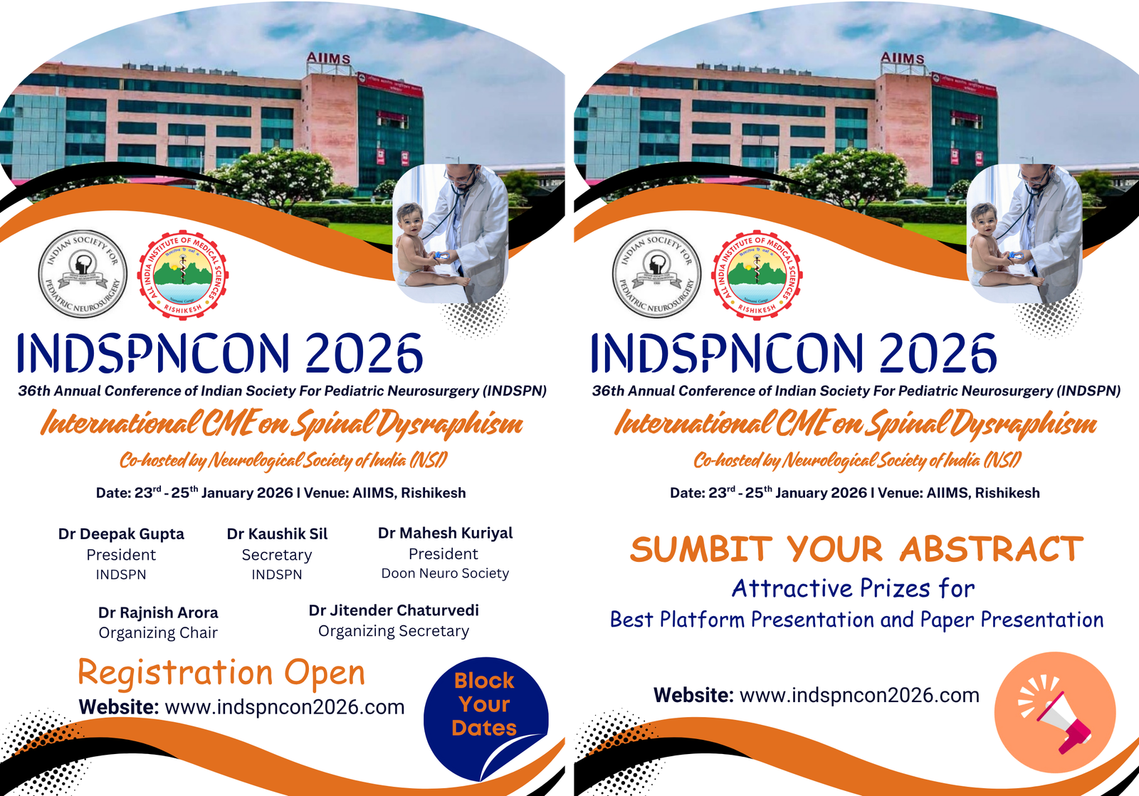 The Indian Society of Pediatric Neurosurgery is a vibrant organisation of pediatric neurosurgeons and those interested in pediatric neurosurgery. It is a family of over 500 neurosurgeons and is a steadily growing community. The society has a strong liaison with the International Society of Pediatric Neurosurgery and conducts an ISPN Educational course every year in India. Our yearly conference, IndspnCon is a must attend event of academic extravaganza and bonhomie. The society conducts webinar and public awareness sessions regularly. Come, be a part of this vibrant community and be a part of the effort for the development of pediatric neurosurgery subspecialty in the country.